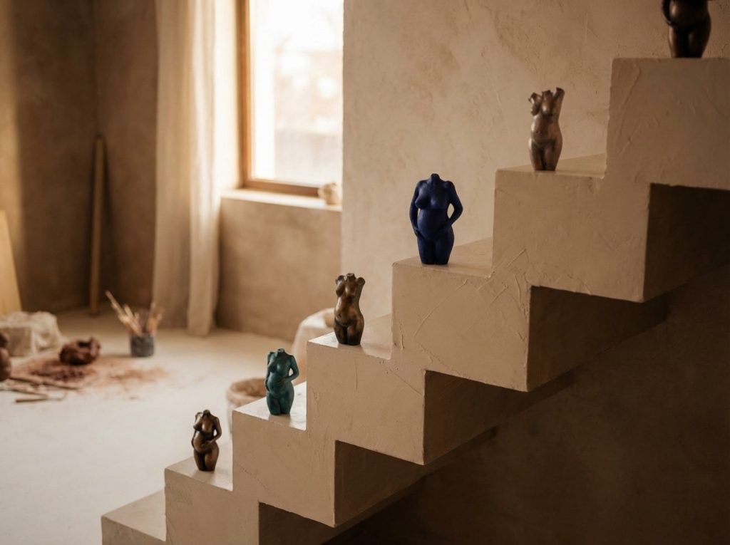 Je kunt kiezen voor een zachte, matte afwerking op een print, een warme metaalcoating of een massief gegoten beeld. Elk materiaal heeft zijn eigen uitstraling en wordt met een andere techniek opgebouwd en afgewerkt.