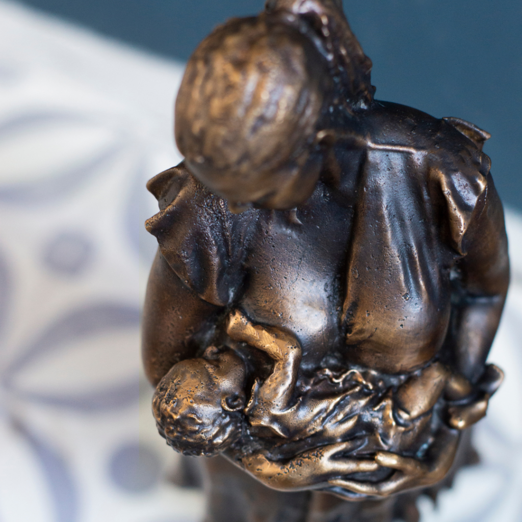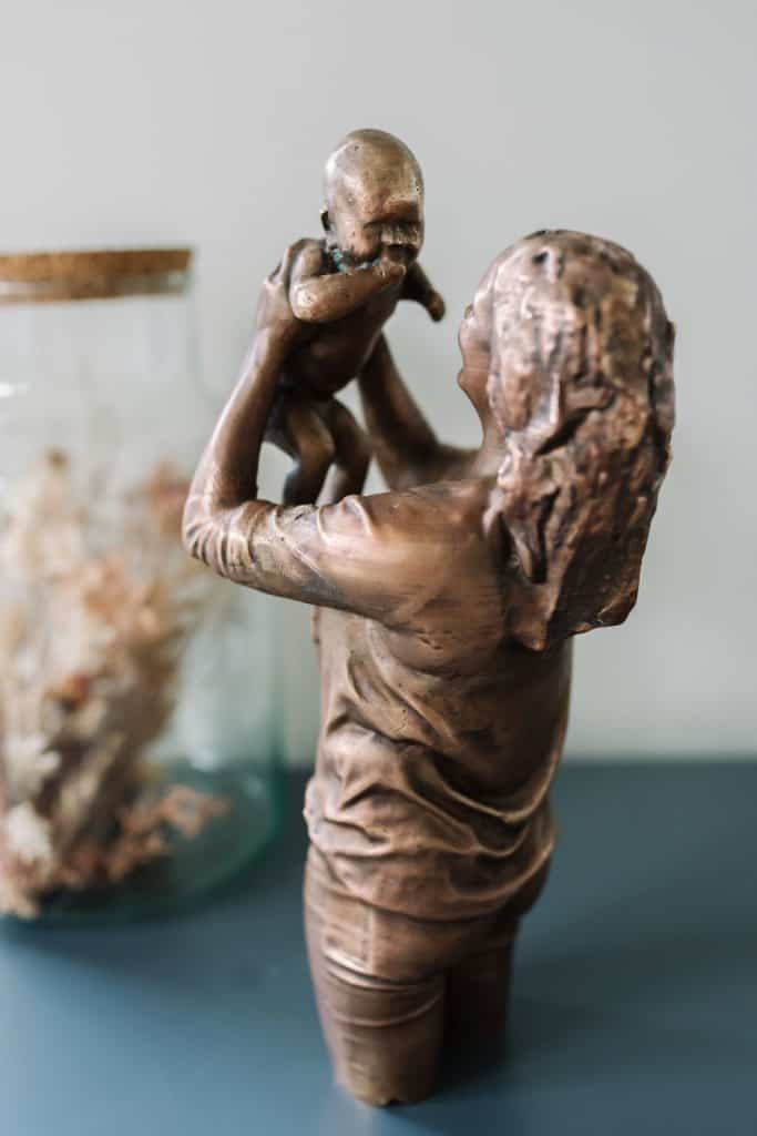 Dit is de reden dat ik het vastleggen van herinneringen in een bronzen beeldje zo waardevol vind. Het vervliegen van de tijd en de momenten die nooit meer terugkomen. Het bronzen moeder en kind beeldje is echt tijdloos. Wanneer ik naar mijn eigen beeldjes kijk is dit mijn roze bril naar het verleden.