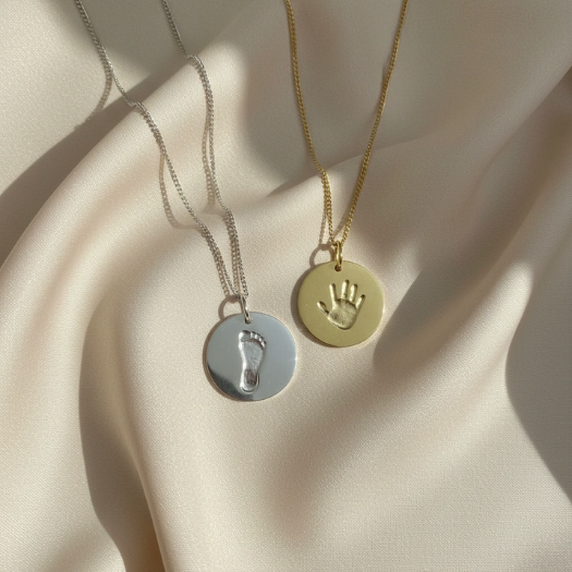 Hoe bijzonder is dit: een kettinkje met een bedel waarin het échte handje of voetje van je kindje zit. Je maakt zelf een afdrukje in klei of gips (eventueel met onze kit) en stuurt die naar ons toe. Van die afdruk maken wij een sieraad in edelmetaal, zodat alle kleine rimpeltjes en teentjes zichtbaar blijven.
