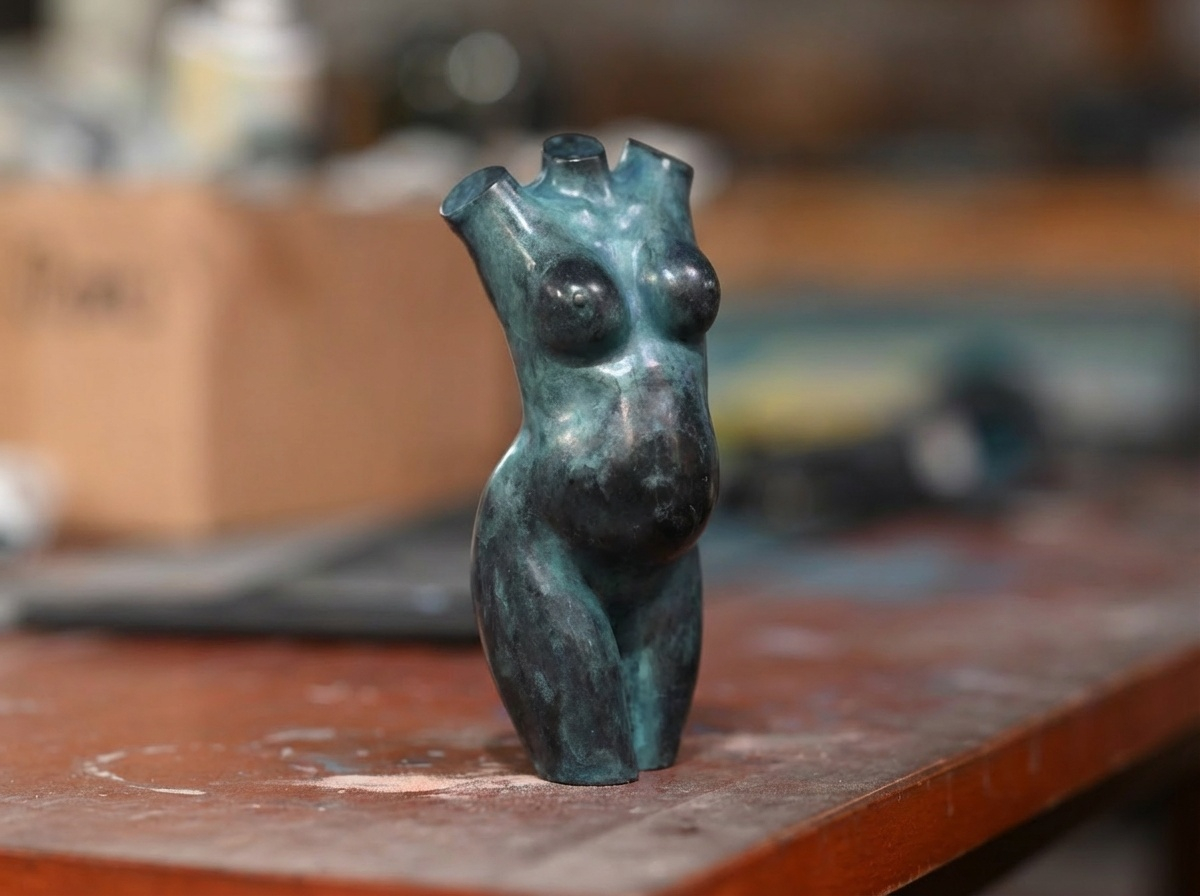 Diep gepatineerd bronzen zwangerschapsbeeld