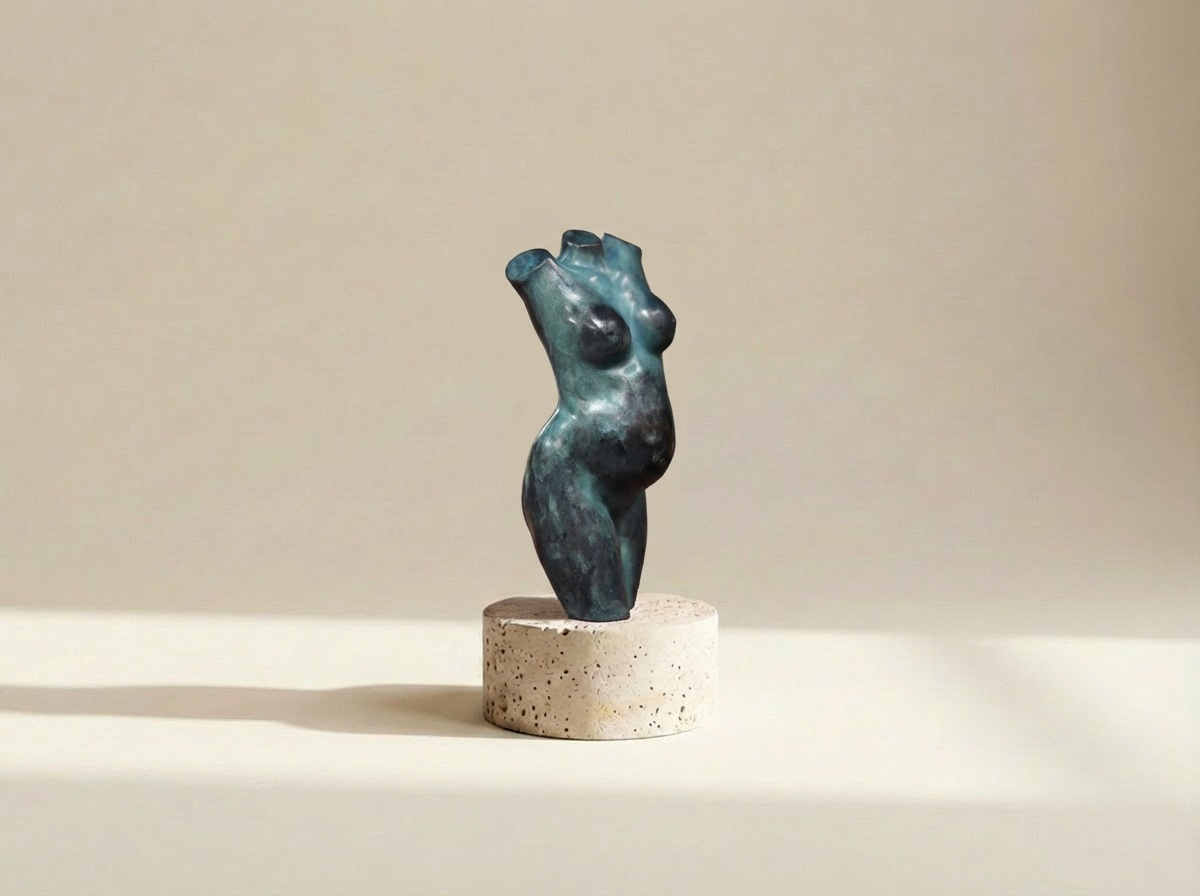 Een diep gepatineerd bronzen zwangerschapsbeeld is geschikt voor vrouwen die hun zwangerschap willen vastleggen in een duurzaam materiaal met veel diepte en karakter. Door de patina is dit beeld minder strak dan bijvoorbeeld off white of licht metaal, en juist geschikt als sculpturaal object in een interieur.