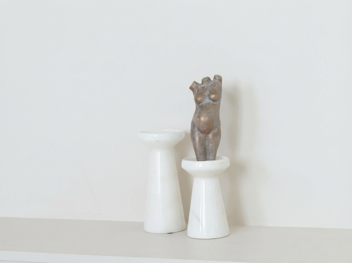 Licht gepatineerd brons heeft een zachte, warme uitstraling met subtiele kleurovergangen. Het oppervlak vangt licht op een rustige manier en benadrukt de vormen zonder harde contrasten. Deze afwerking wordt vaak gekozen door vrouwen die houden van een natuurlijke, tijdloze uitstraling die past in zowel moderne als klassieke interieurs.
