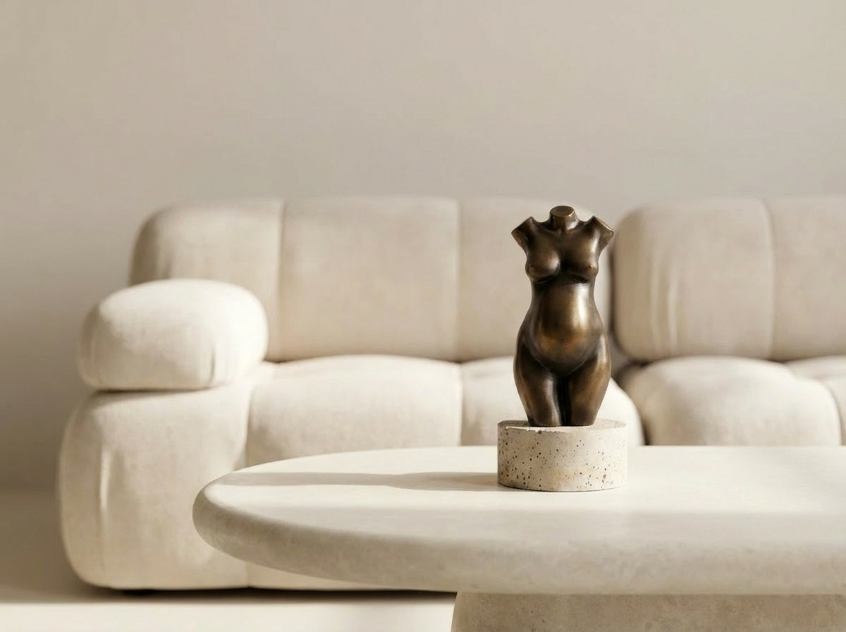 Veredeld brons heeft een volle, warme kleur met subtiele kleurnuances. Het oppervlak wordt zorgvuldig opgebouwd en afgewerkt, waardoor het beeld een zachte, zijdeachtige glans krijgt zonder glimmend te worden. Elke afwerking is uniek en laat kleine nuances in tint en diepte zien.